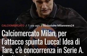 迪马:卢卡再次成为米兰中锋候选?米兰锋线...